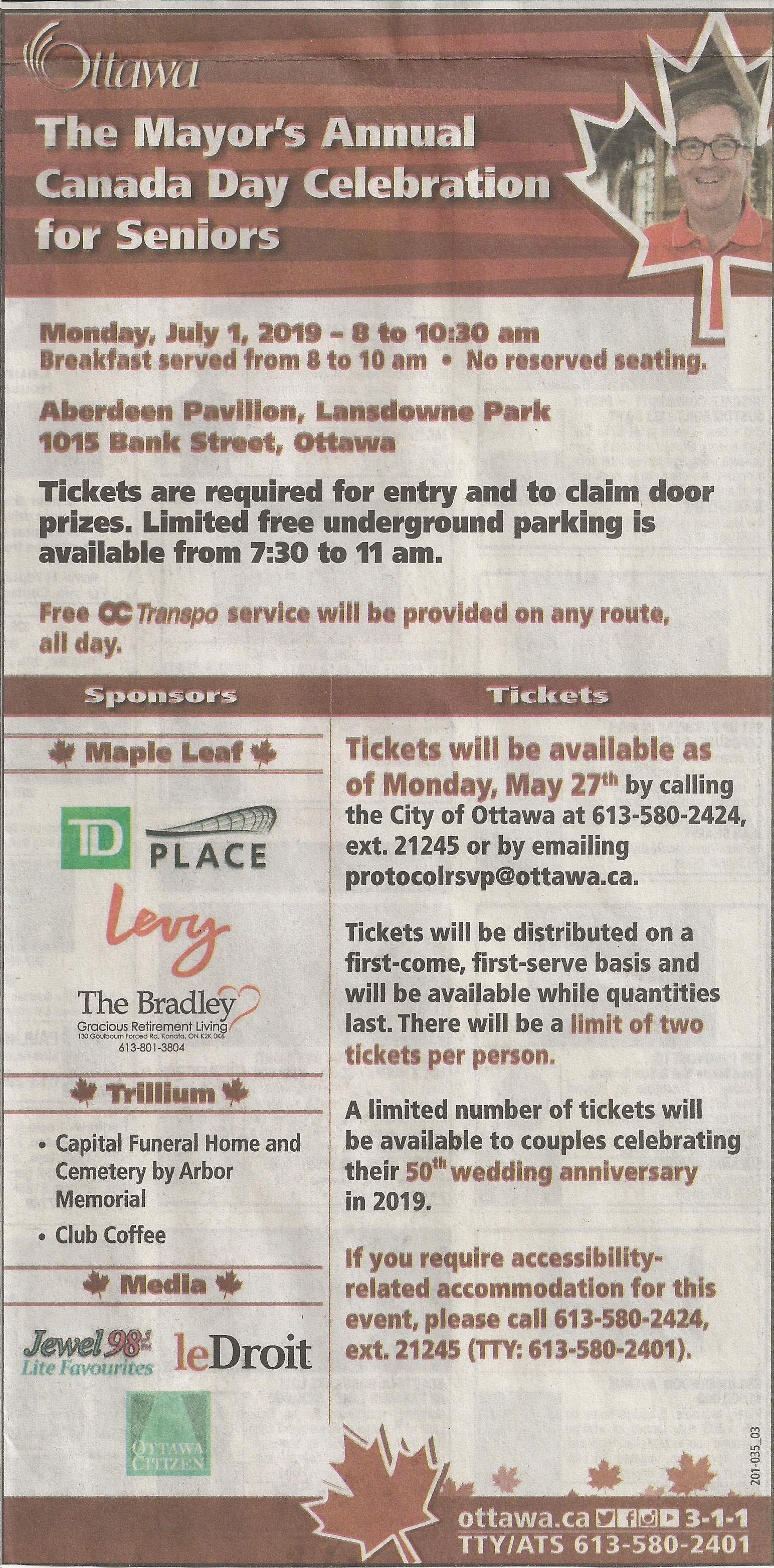 The Mayor will be hosting his annual Canada Day Celebration for Seniors.